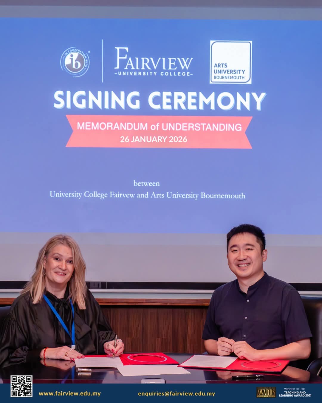 University College Fairview (UCF) is proud to announce its strategic partnership with Arts University Bournemouth (AUB), UK, to launch the exclusive IB Teacher Internship Programme. This transformative pathway is designed for aspiring educators to gain world-class International Baccalaureate (IB) teaching qualifications while benefiting from international exposure and a guaranteed future with the Fairview Group of Schools. Rooted in the recent MOU between UCF and AUB, this programme offers successful candidates a unique blend of rigorous academic training, hands-on classroom experience, and the opportunity to engage in global educational practices paving the way for a dynamic career in international education.